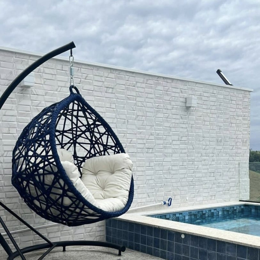 Unindo conforto, estilo e design, nosso balanço de modelo Gota trás a qualidade que você só encontra na Village, todo em aluminio e corda nautica, podendo ficar no tempo independente do clima.